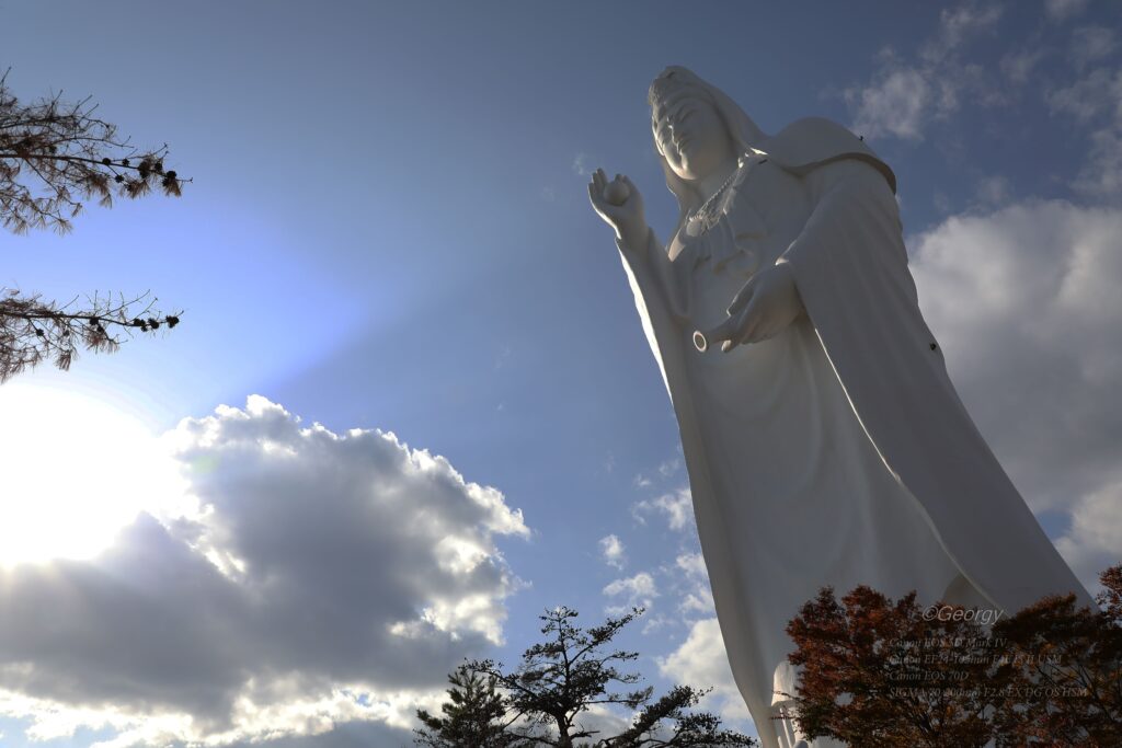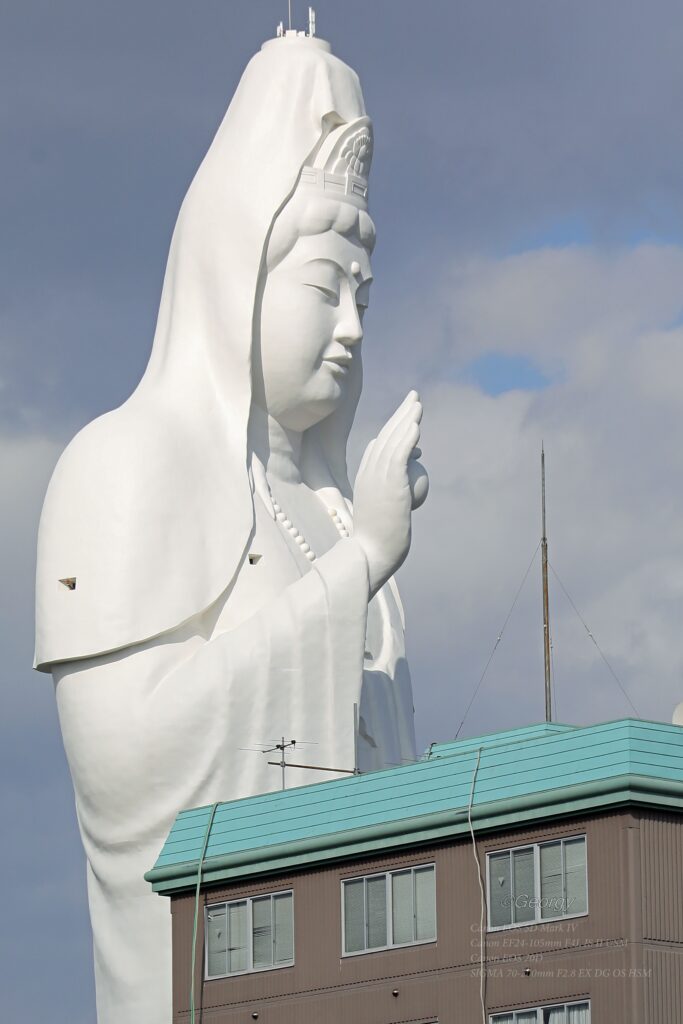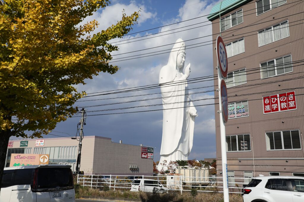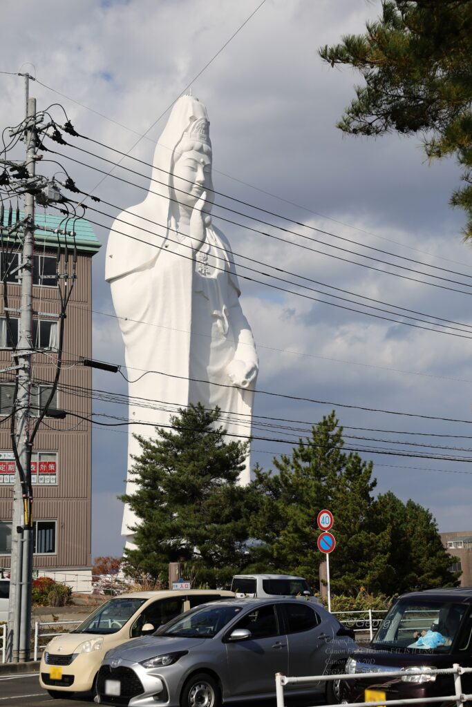 その圧倒的な存在感からネット上で「仙台のラスボス」という愛称で呼ばれている仙台大観音 (仙台天道白衣大観音)。