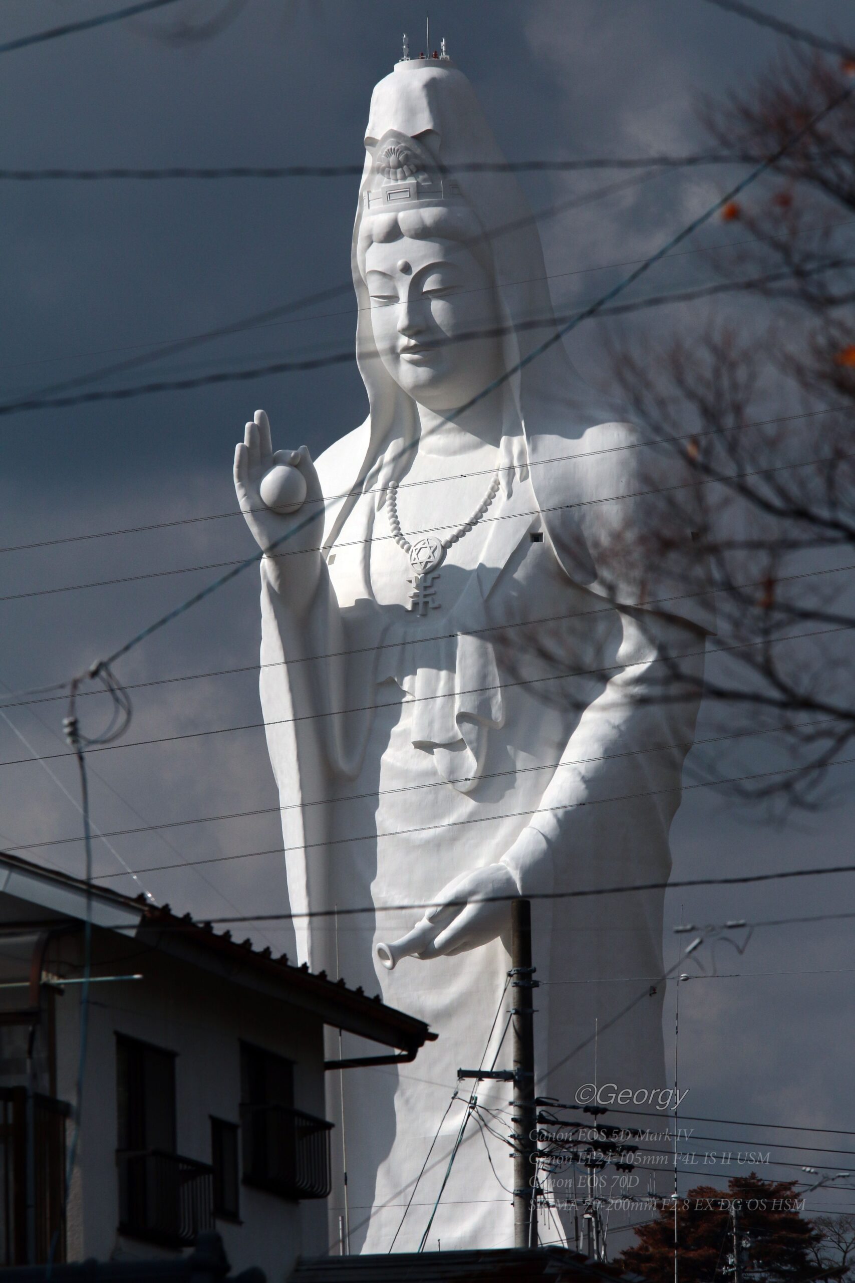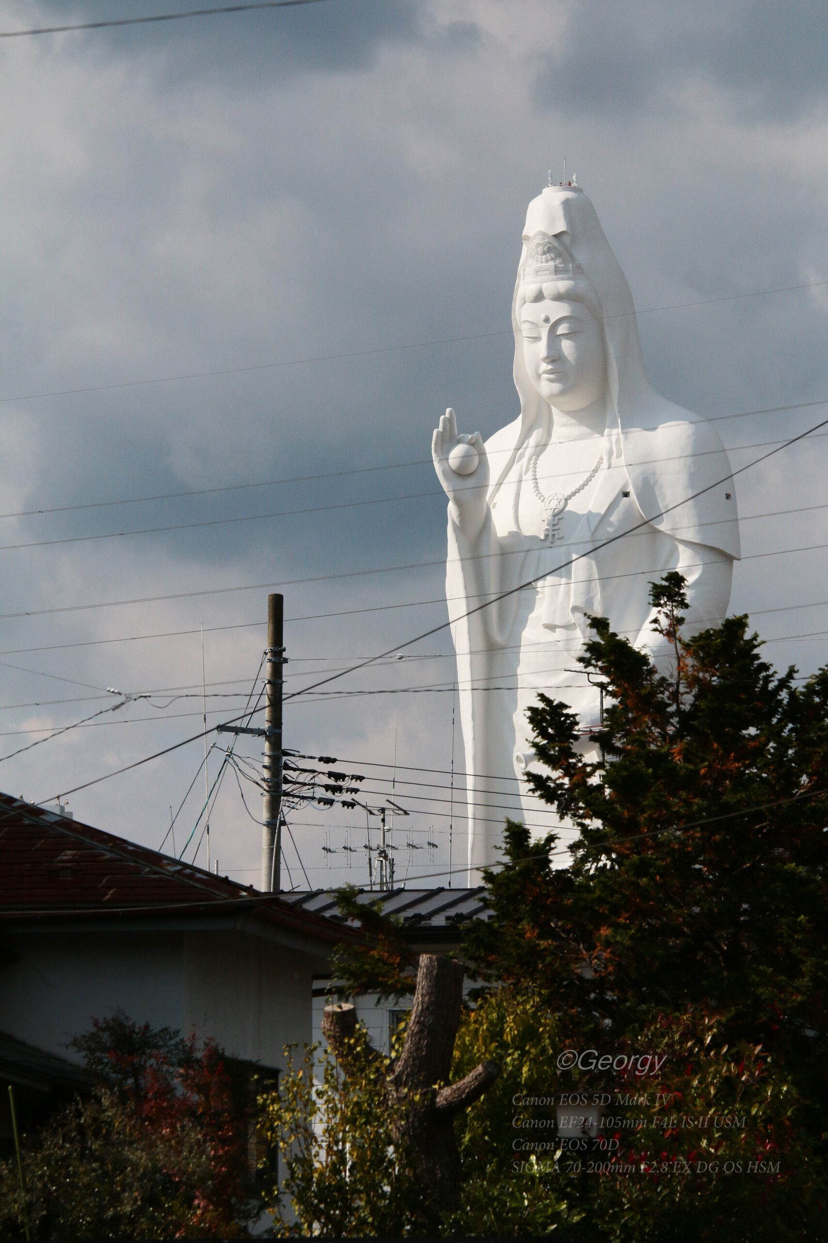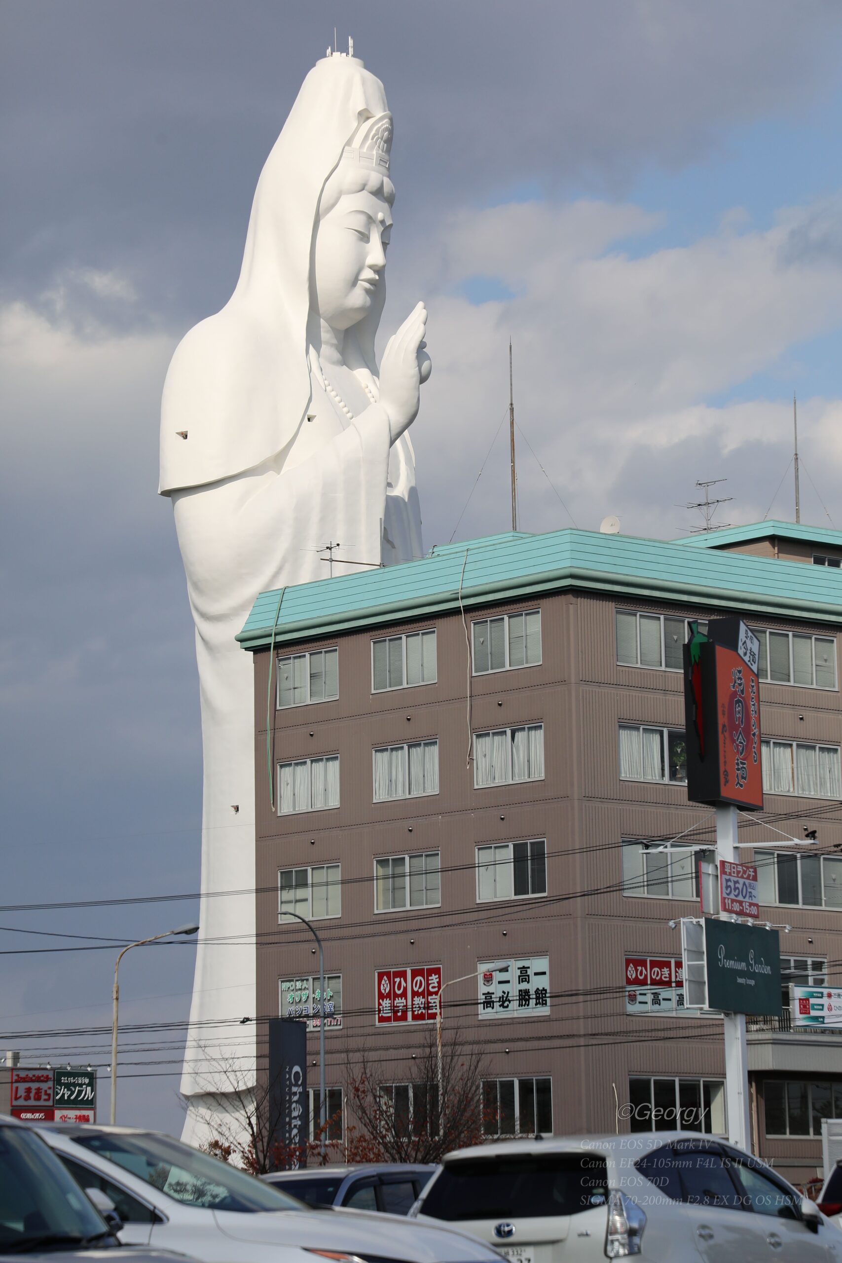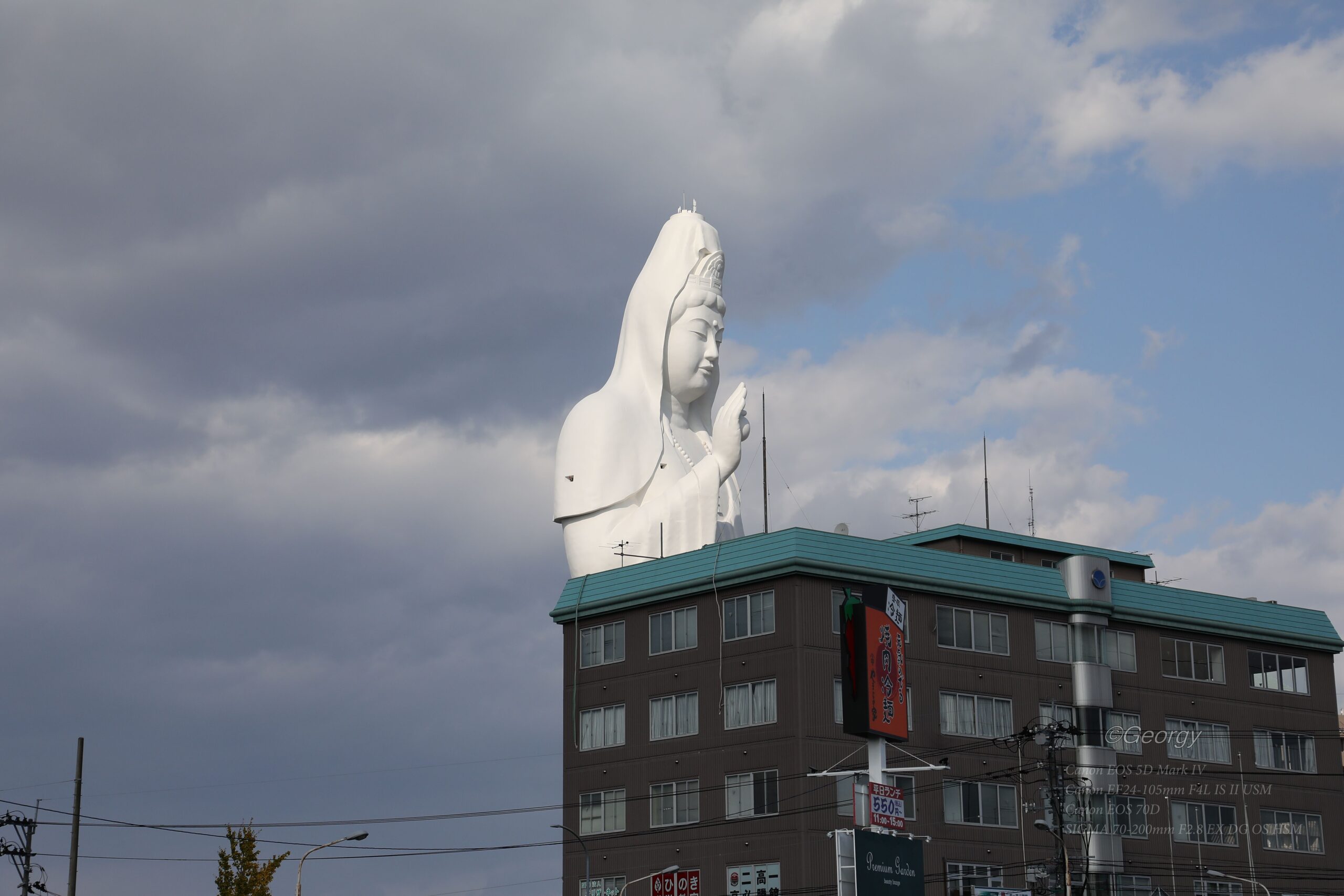 その圧倒的な存在感からネット上で「仙台のラスボス」という愛称で呼ばれている仙台大観音 (仙台天道白衣大観音)。
